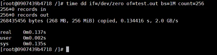 time dd if=/dev/zero of=test.out bs=1M count=256